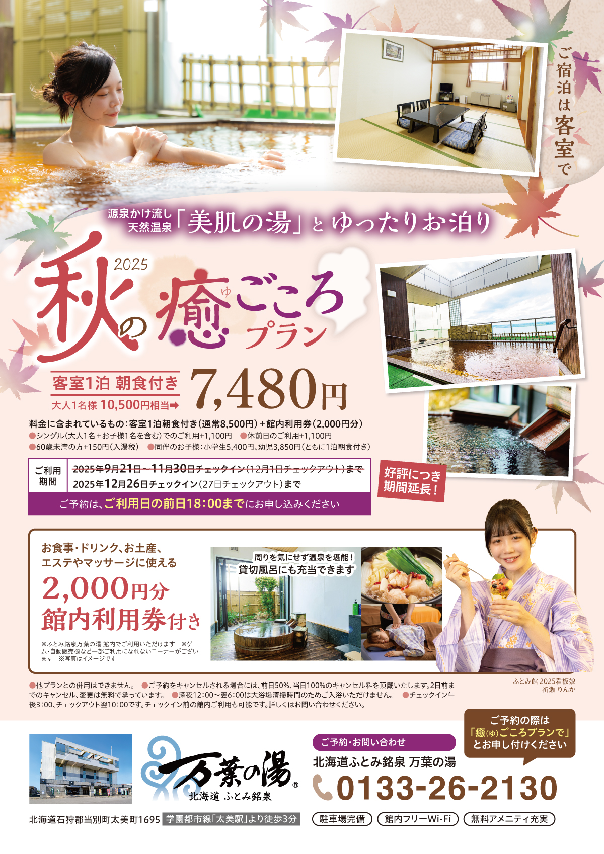 2025年12月26日チェックイン分まで(12月27日チェックアウトまで)