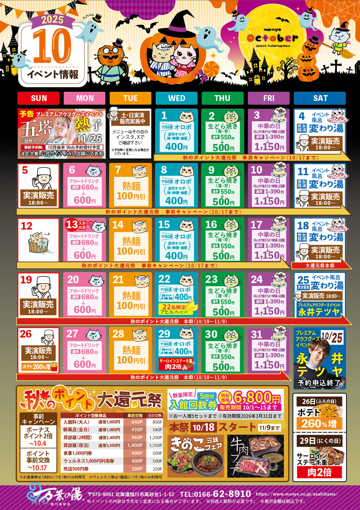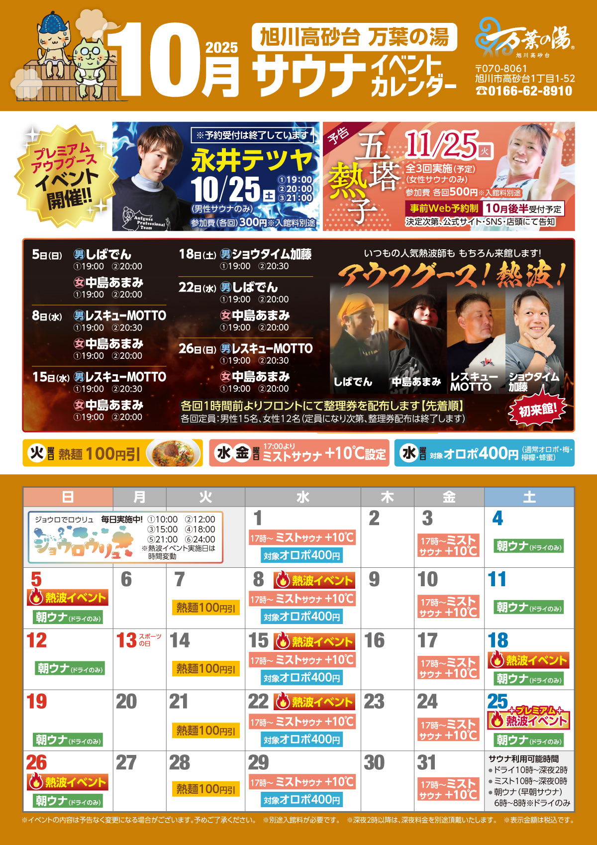 旭川高砂台 万葉の湯 SNS公式アカウント FOLLOW ME X @manyo_asahikawa INSTAGRAM @manyoasahikawa FACEBOOK manyo.asahikawa TIKTOK manyoclub