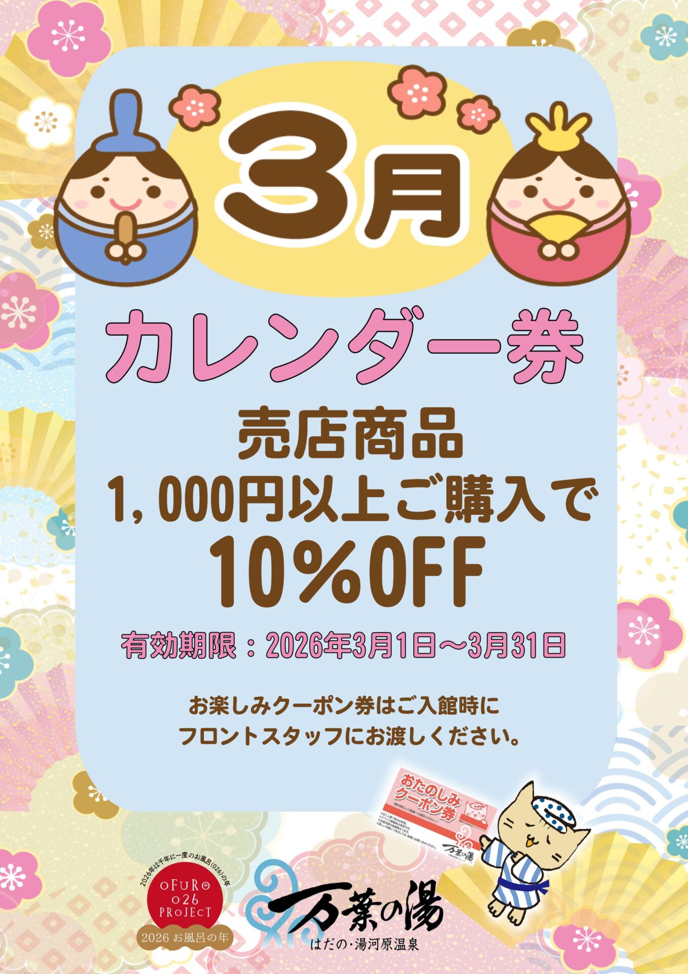 3月万葉オリジナルカレンダーおたのしみクーポン券