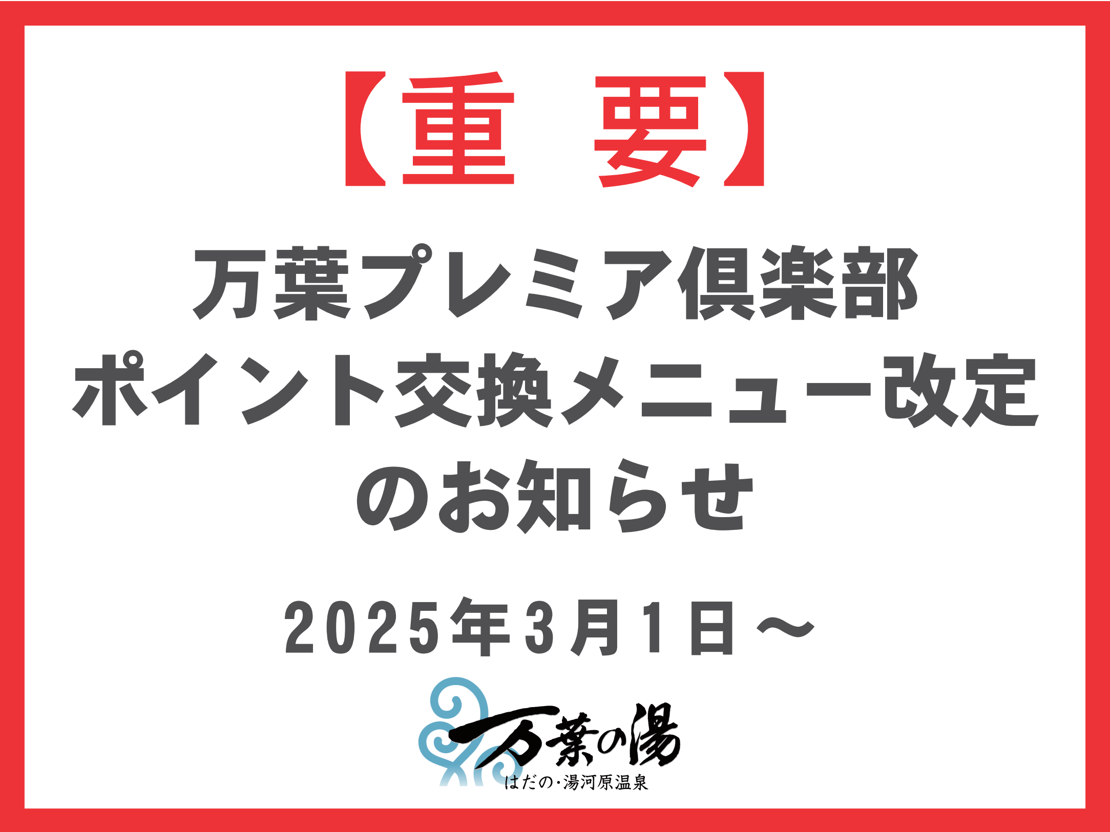 万葉プレミア倶楽部ポイント交換メニュー改定のお知らせ