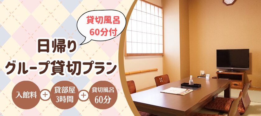 ●入館料(2名様)+貸部屋(3時間)+貸切風呂(60分)がセットになったお得なクーポンです。