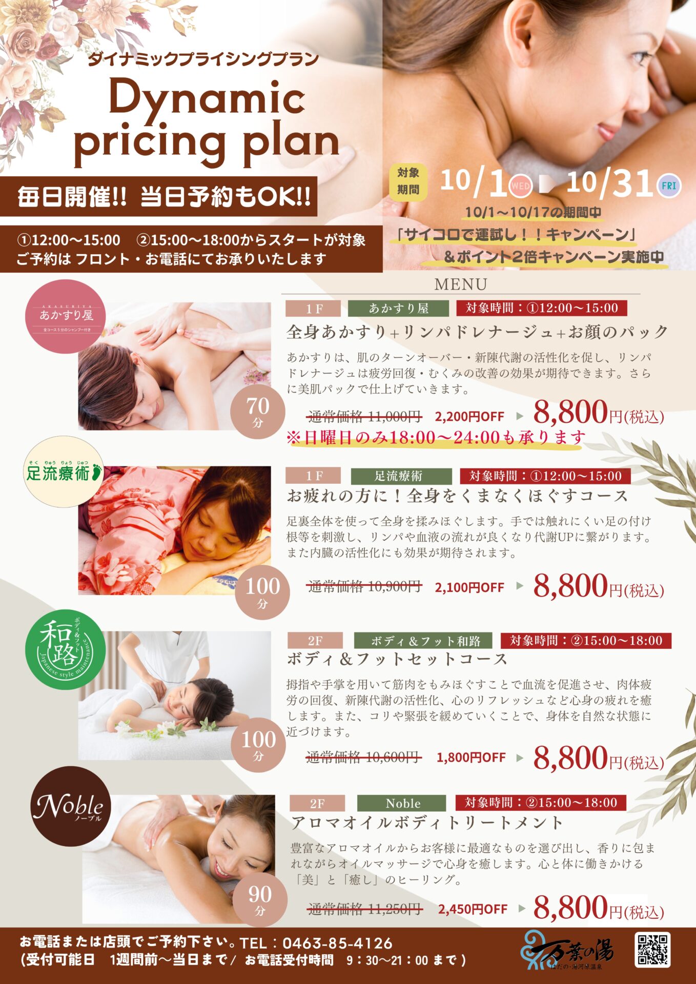 人気のリラクゼーションメニューが特別価格でご利用いただけます✨