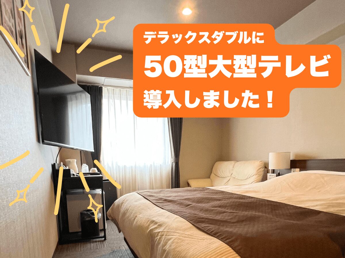 このたび、お客様により快適にお過ごしいただけるよう、デラックスダブルルームに 50型の大型テレビ を新たに導入いたしました!