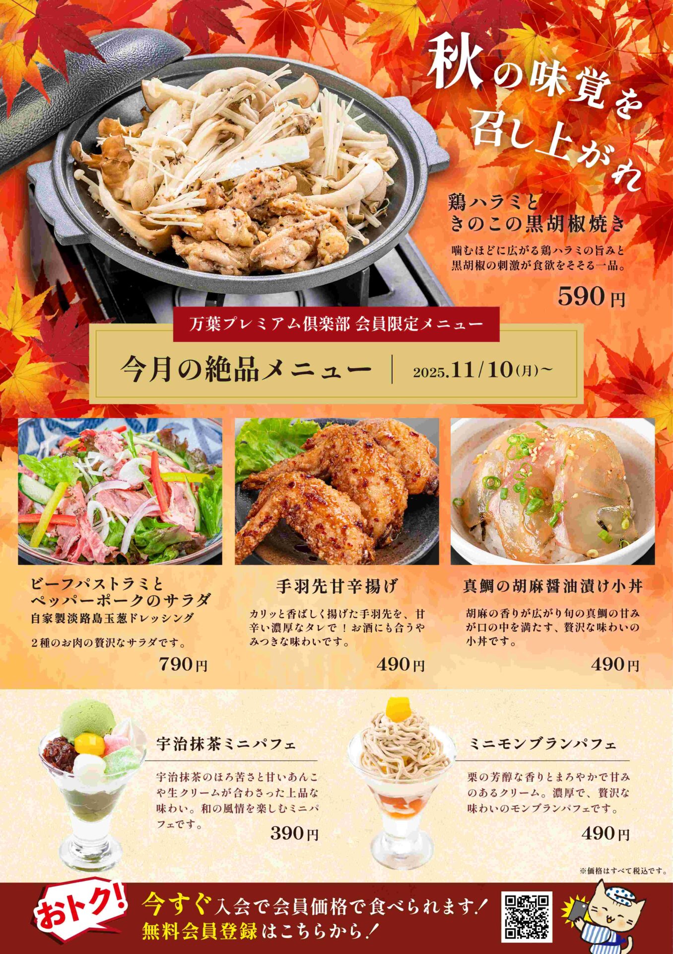 2025.11.09 会員様限定メニューのご案内 11月10日からの会員様限定メニューはこちらっ!! 期間限定の会員メニューをこの機会に是非ご賞味ください。 まだ会員入会されていないお客様は是非この機会にっ!
