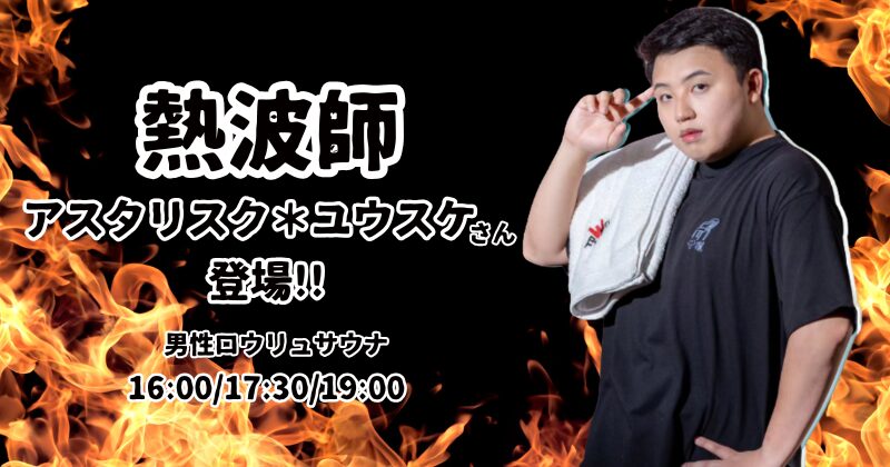3月14日(土) 「熱波師 アスタリスク*ユウスケさん」が万葉の湯 はだの館の男性ロウリュサウナに登場!!