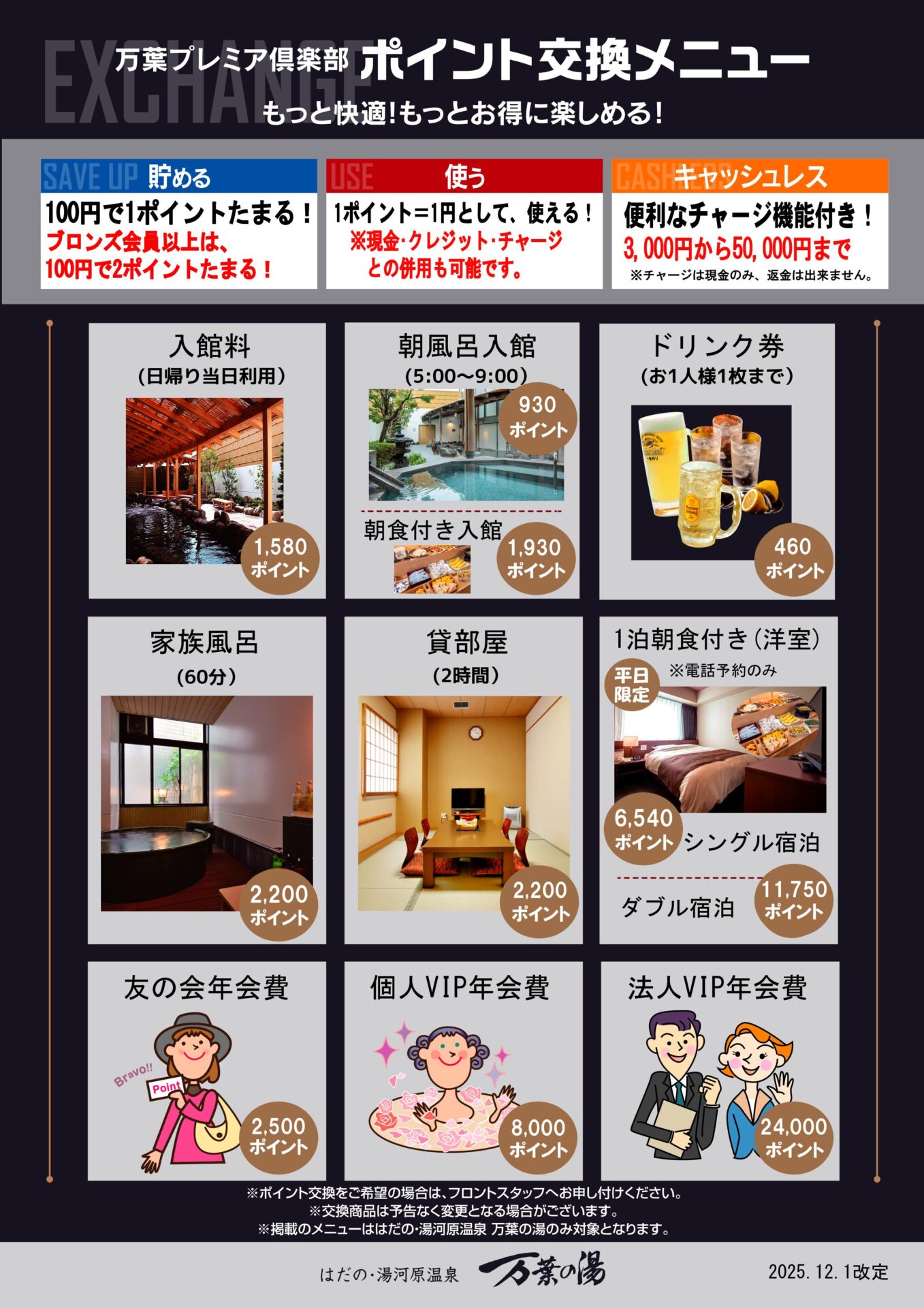 万葉プレミア倶楽部ポイント交換メニュー改定のお知らせ