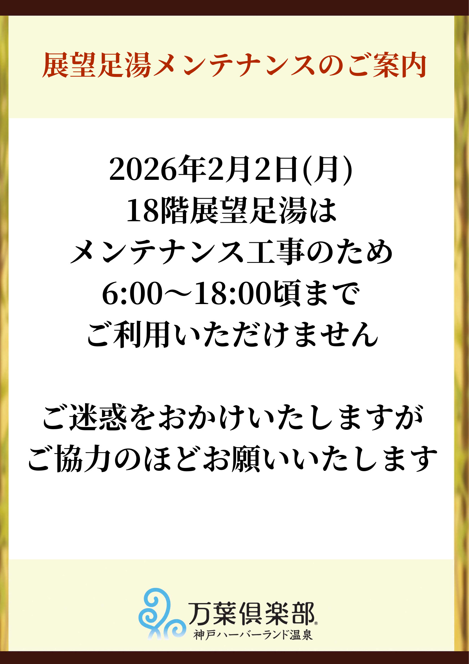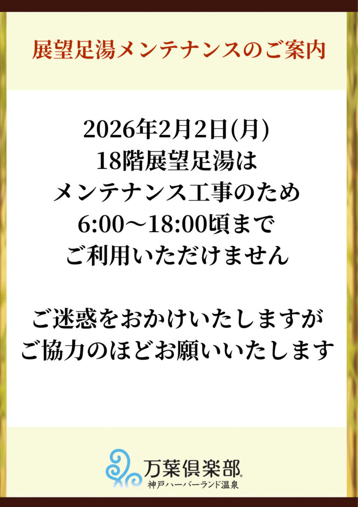 2/2(月)足湯メンテナンスのご案内