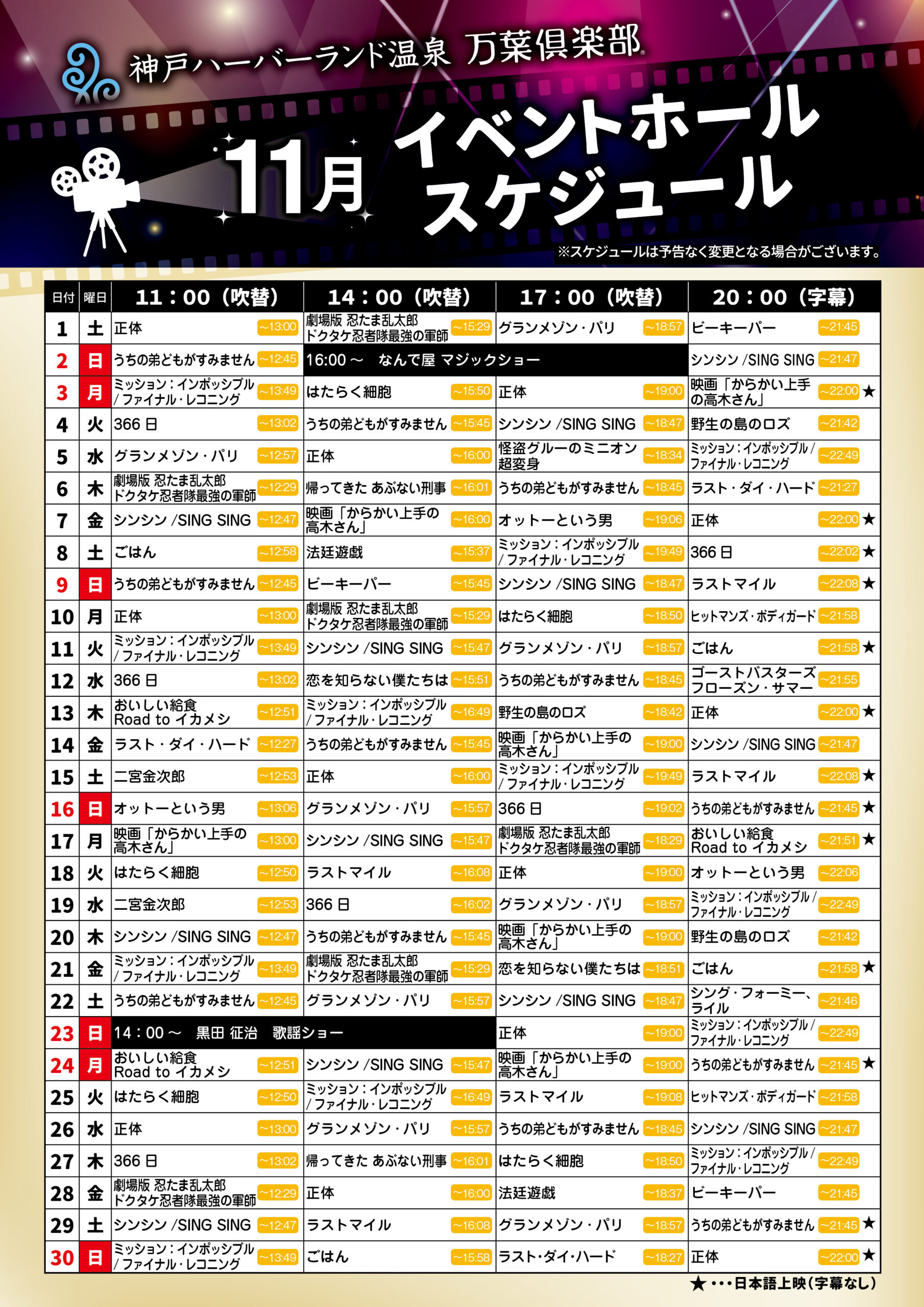 2025年11月イベントホールスケジュール