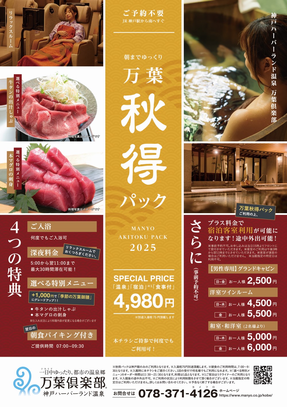 ※神戸ハーバーランド温泉 万葉倶楽部(神戸館)でのご利用のみ有効です