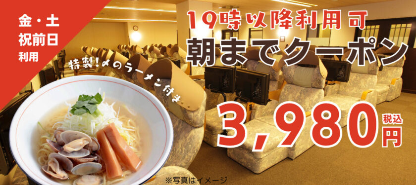 ●19時以降の入館で入館料+深夜料金+〆の麺がセット