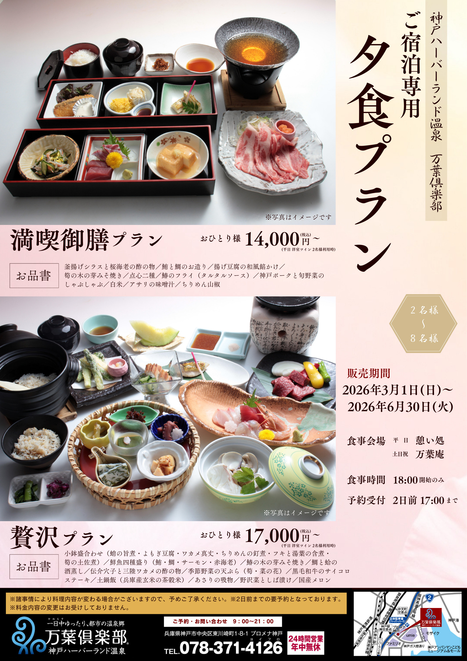 ※宿泊日2日前17:00までにご予約が必要です