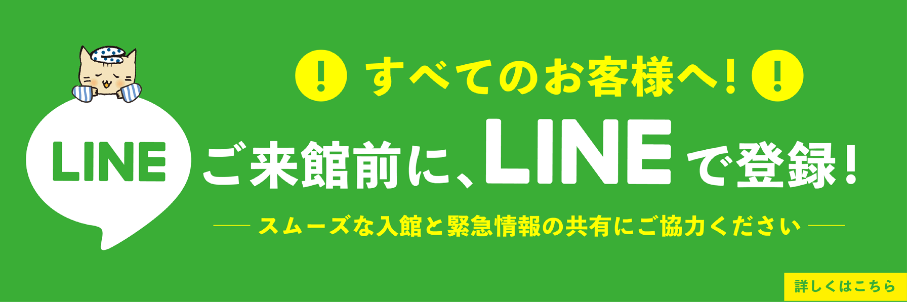 ※暴力団関係者、泥酔されている方、皮膚疾患、その他伝染する疾患をお持ちの方、ペット類の持込みなどのご入館は固くお断りしております。