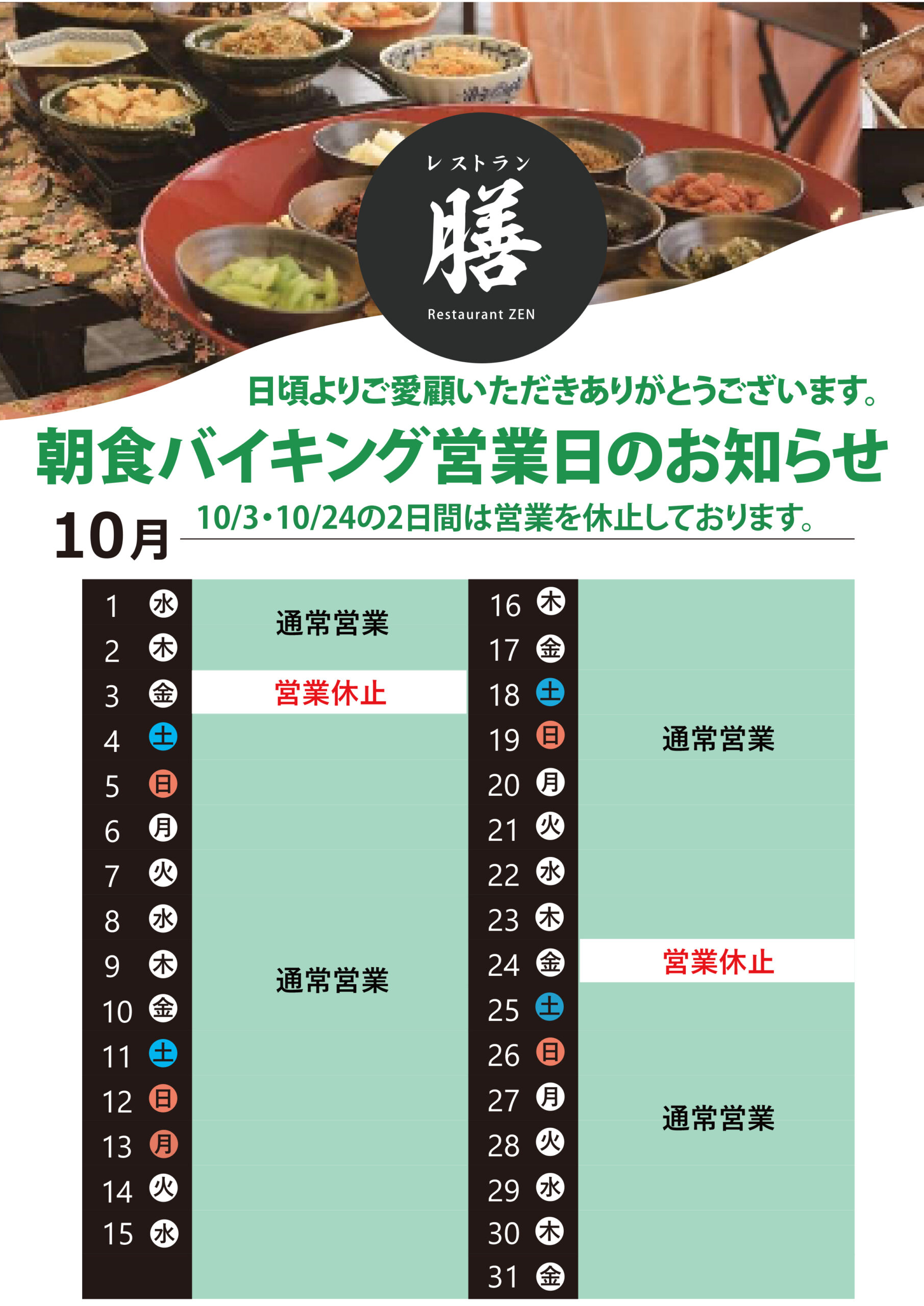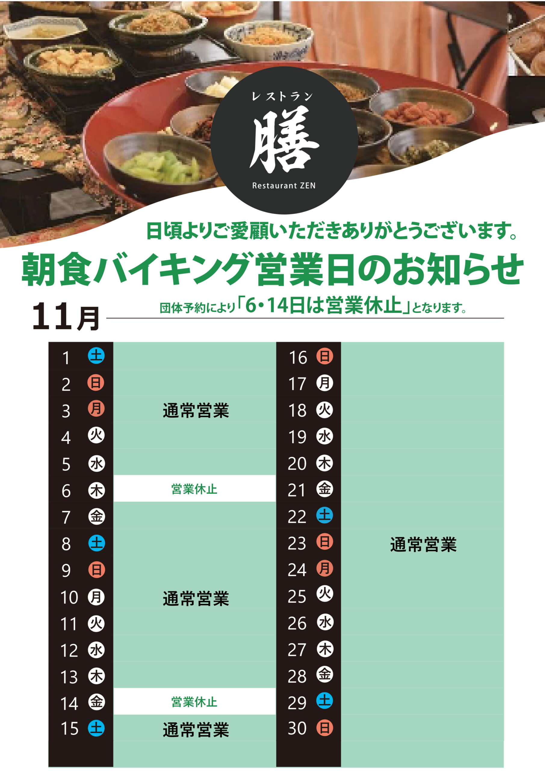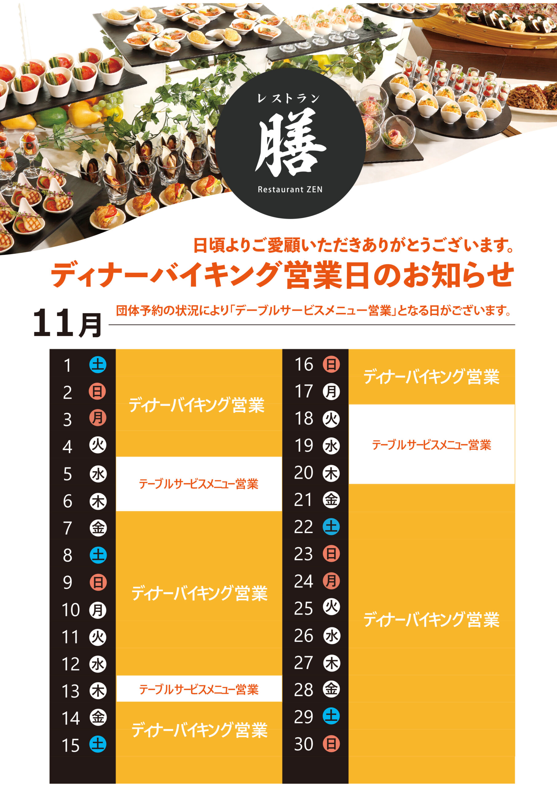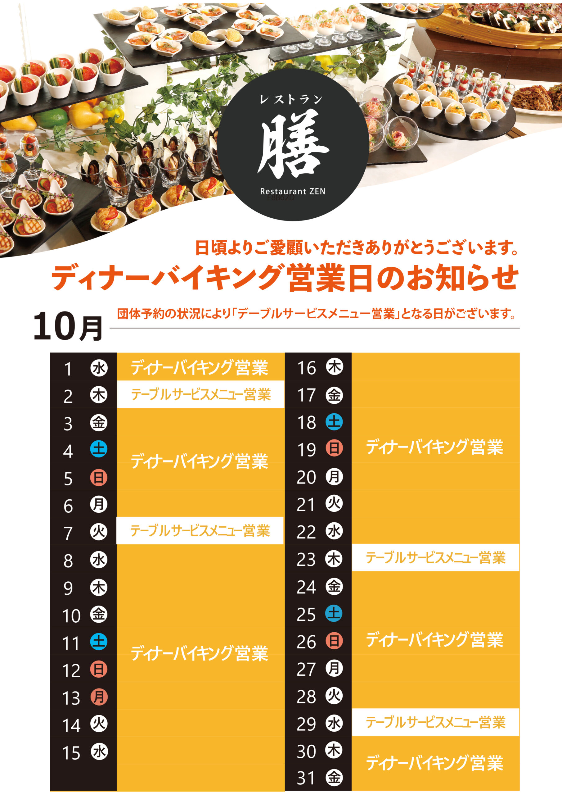 10月/11月のバイキングスケジュールをお知らせ致します。