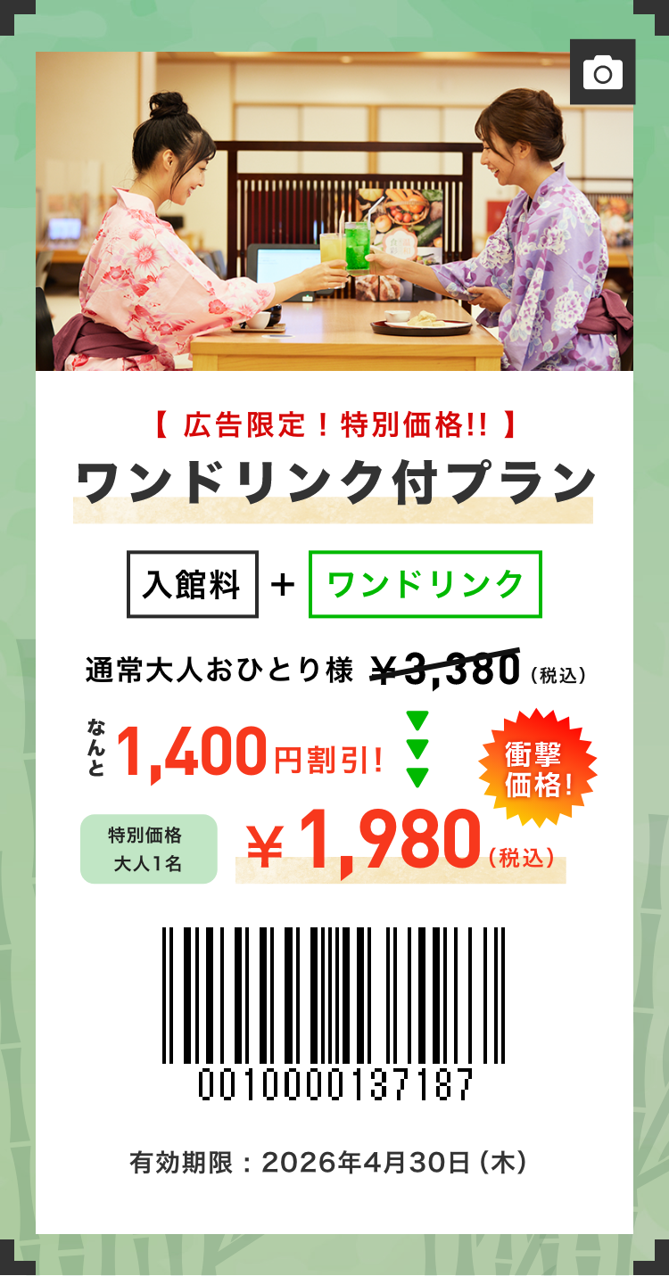 入湯税100円が別途掛かります。
