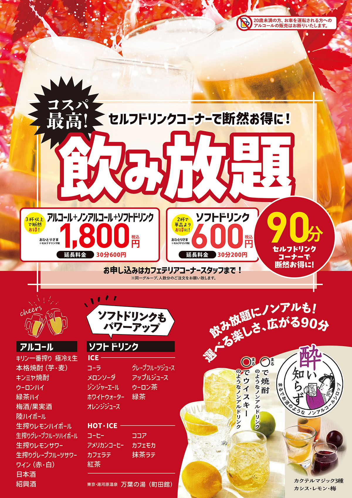 ※18歳未満の方(高校生のみ)のみでのご入館はご遠慮いただいております。ご了承くださいませ。 当施設(日帰り入浴及び宿泊利用共に)は、保護者の方ご同伴にてご利用願います。(18歳未満の方(高校生のみ)のみのご利用は出来ません。)
