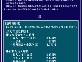 ※暴力団関係者、泥酔されている方、伝染性の疾患をお持ちの方は、ご入館をお断りいたします。皮膚疾患をお持ちの方は、症状の程度によって、入浴をお断りさせていただく場合がございます。ペット類の持込みなどのご入館は固くお断りしております。