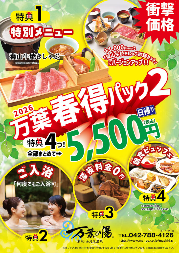 ※東京・湯河原温泉 万葉の湯(町田館)のみの限定プランです。