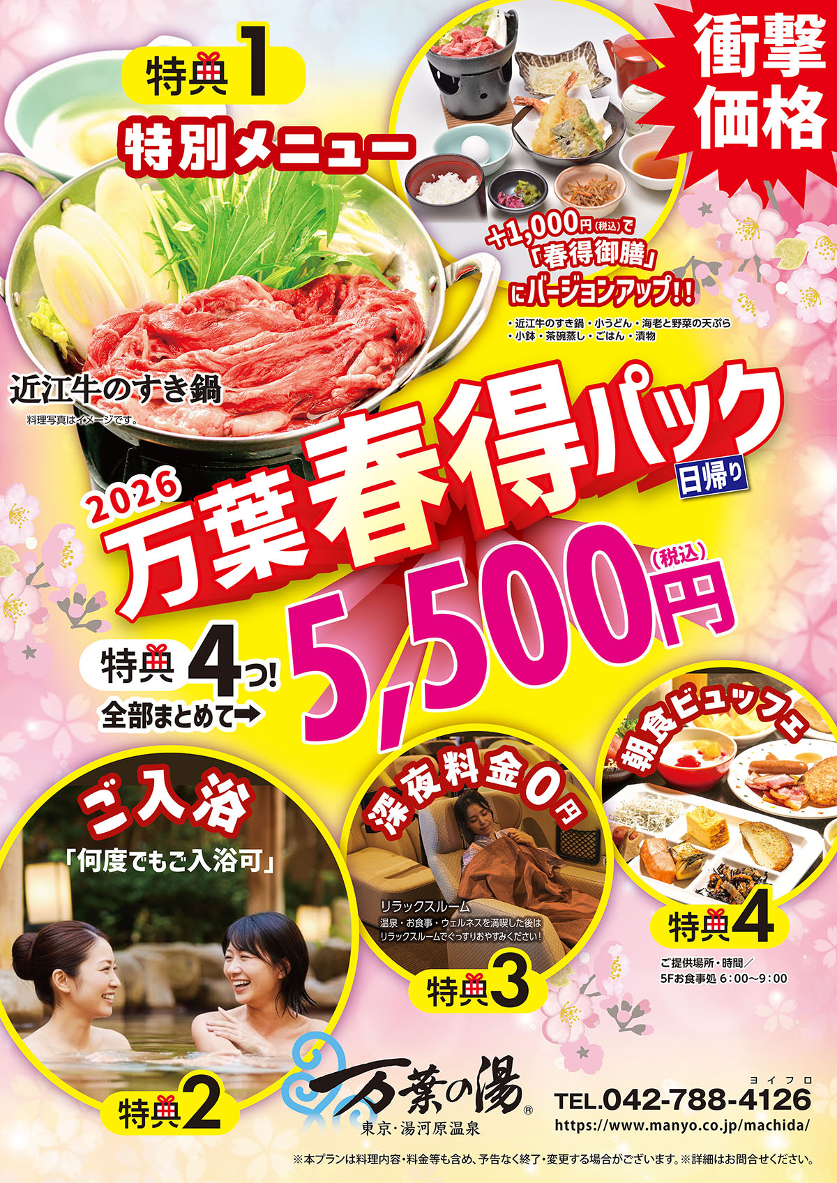 ※東京・湯河原温泉 万葉の湯(町田館)のみの限定プランです。