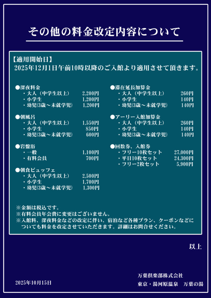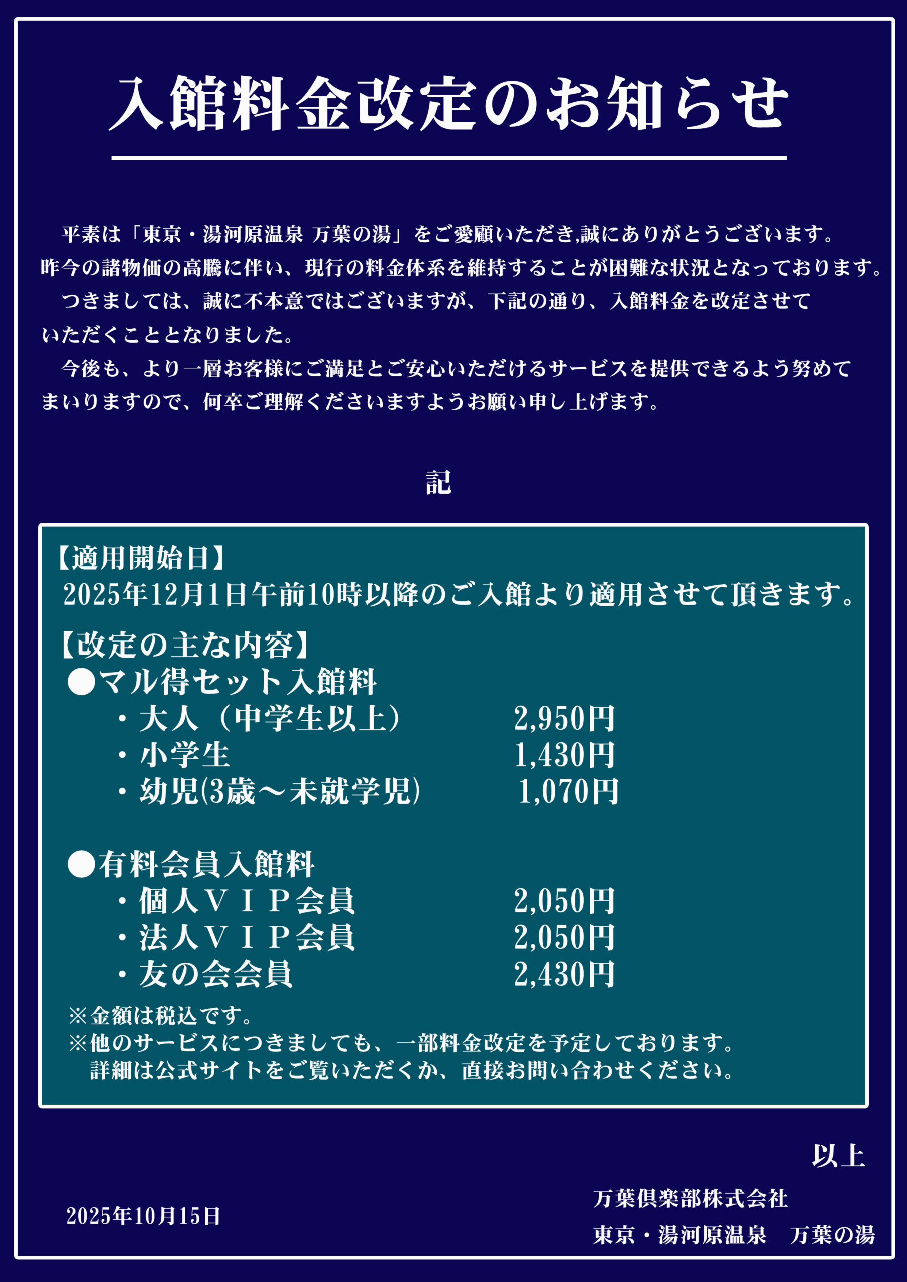 【重要】入館料金改定のお知らせ(2025.12.1〜)