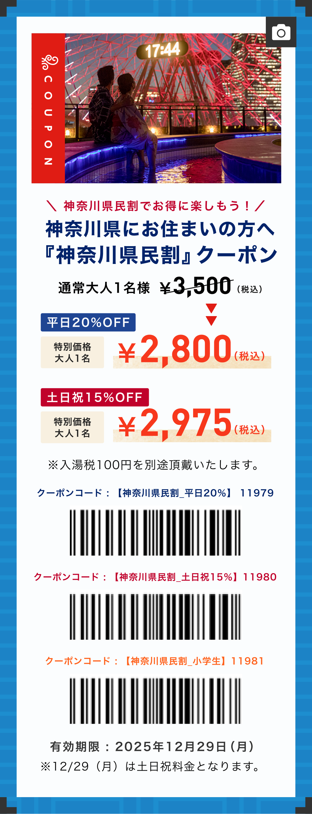 ※『神奈川県民割』のご利用には入館時に公的証明書