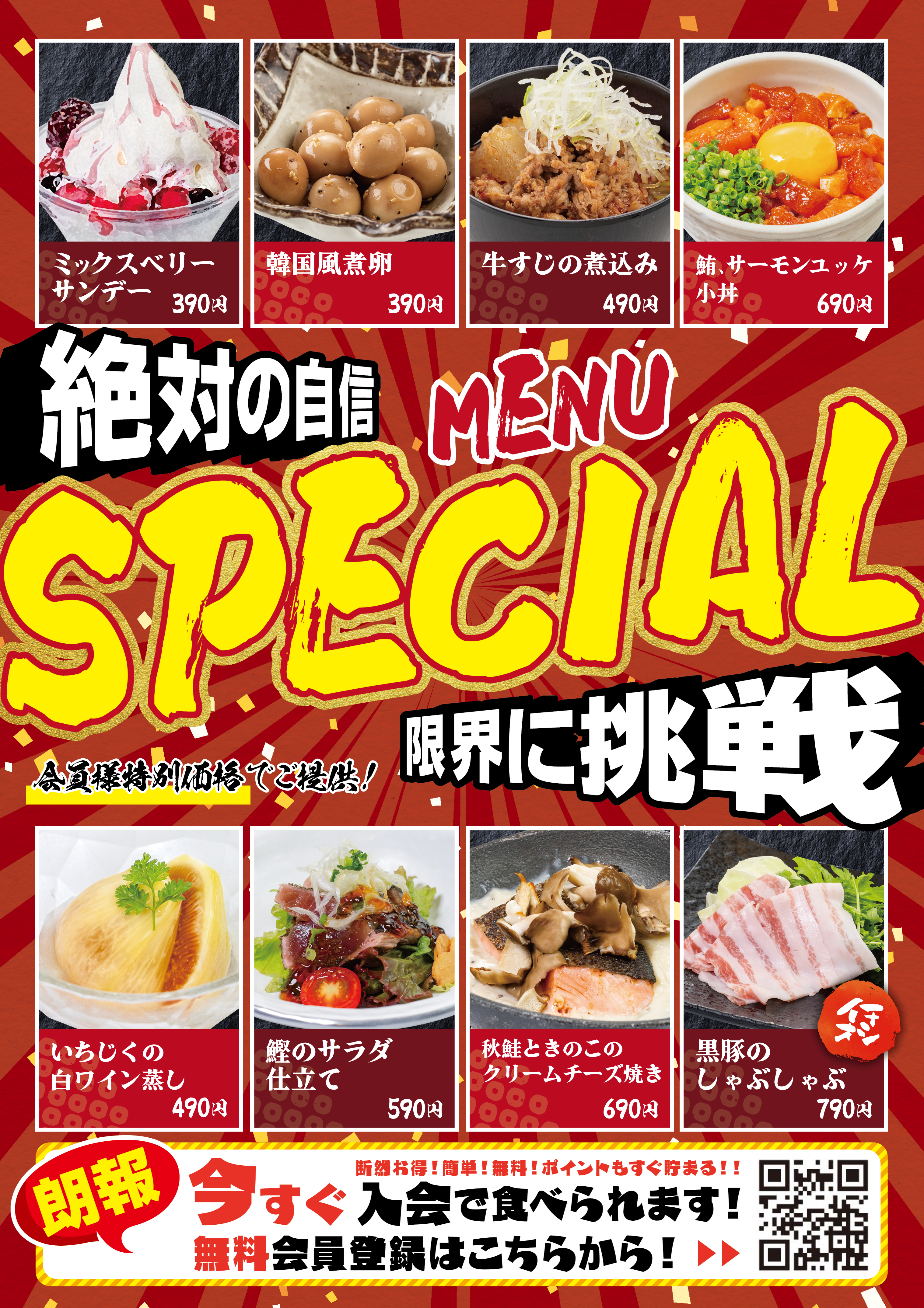 プレミア倶楽部会員様への日頃のご愛顧に感謝し、採算度外視の特別メニューをご用意いたしました。
