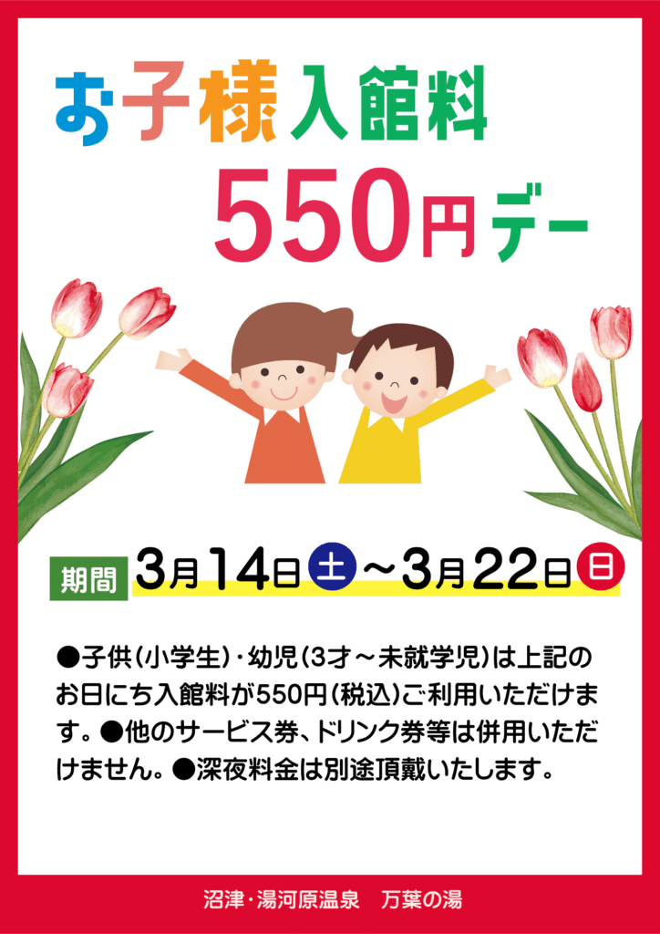 ●お子様550円入館デー 3/14(土)~3/22(日)