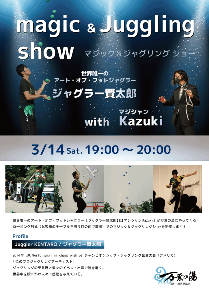 ●ジャグリング&マジックショー 3/14(土)19:00~20:00