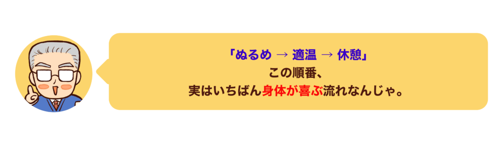39℃でゆっくり → 41.5℃でサッと → 休憩。