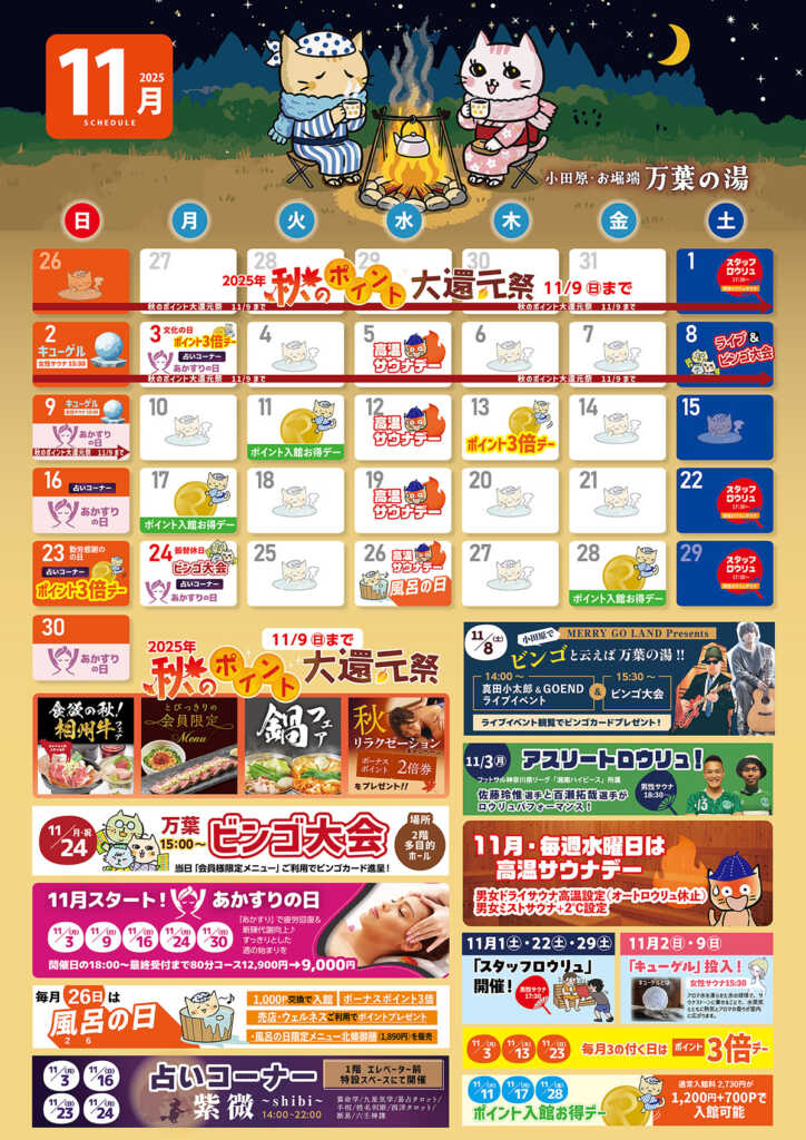 11月はイベントが沢山!万葉の湯小田原館で楽しもう!