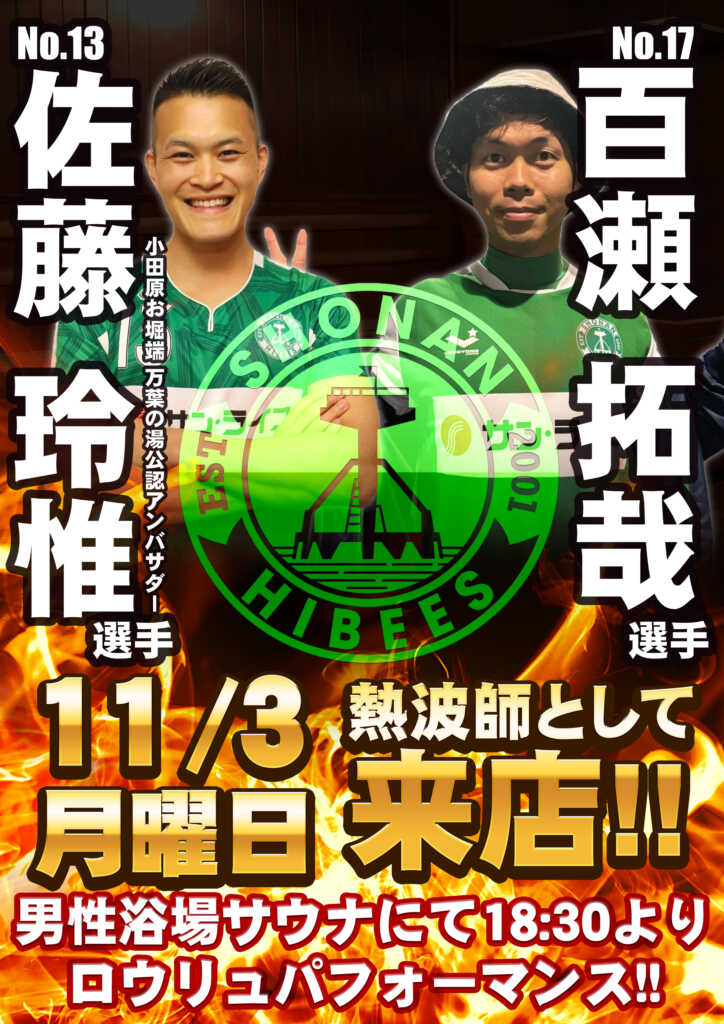 湘南ハイビースの選手が熱波師として来店!