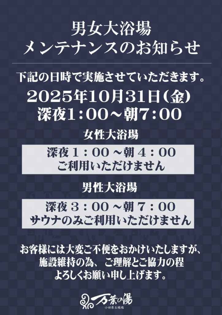 【お知らせ】大浴場メンテナンス