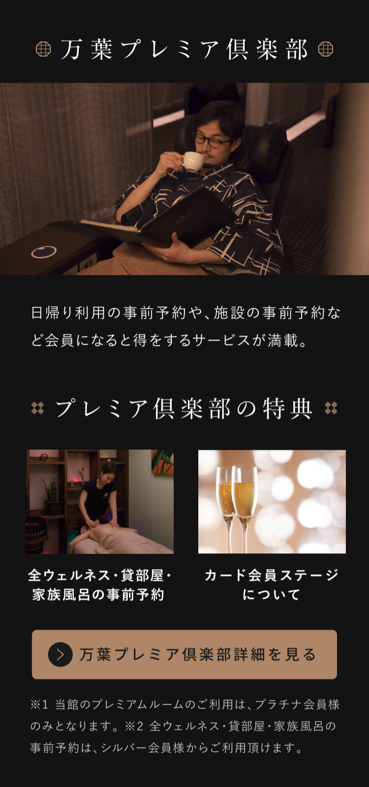 ※おむつ(トレーニングパンツを含む)の取れていないお子様や、おむつ着用の高齢者の大浴場ご利用はご遠慮いただいております。別料金になりますが、一部店舗で貸切りのお風呂もご用意しております。(ご家庭などで使用するベビーバスをご用意しておりますのでそちらをご活用ください。)