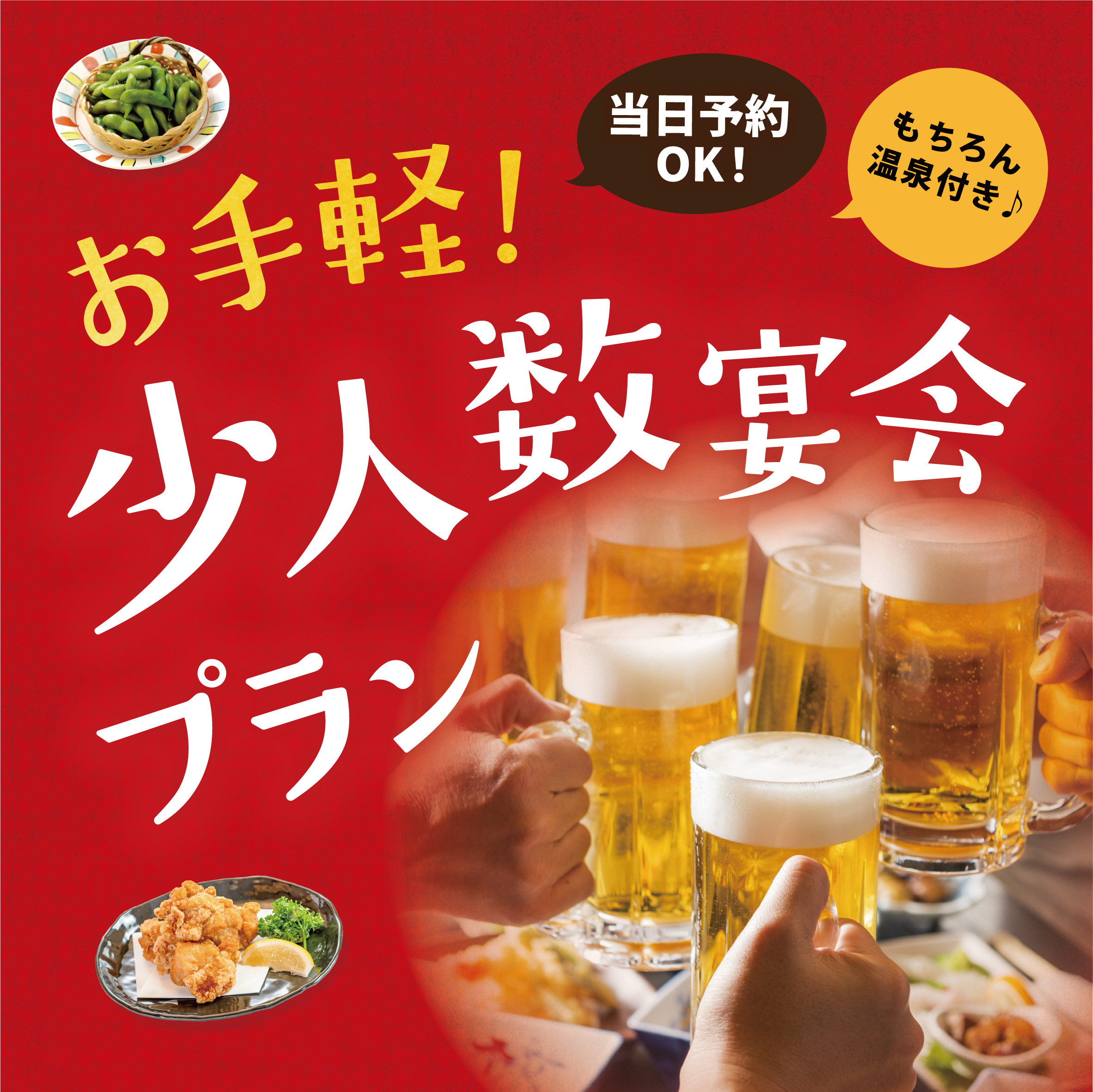 2時間飲み放題がセットになったお得なプラン!