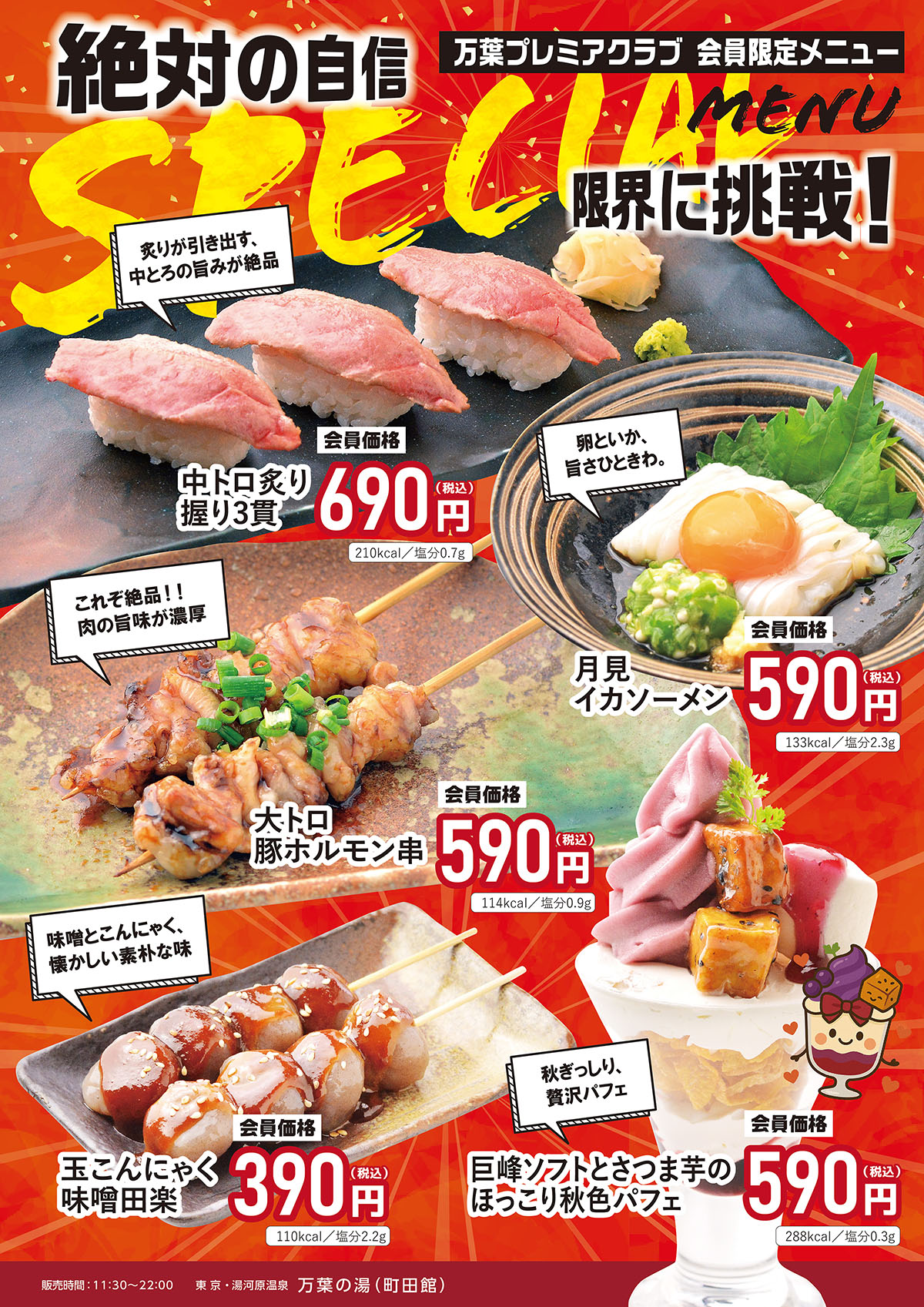 万葉プレミア倶楽部会員専用メニュー10月